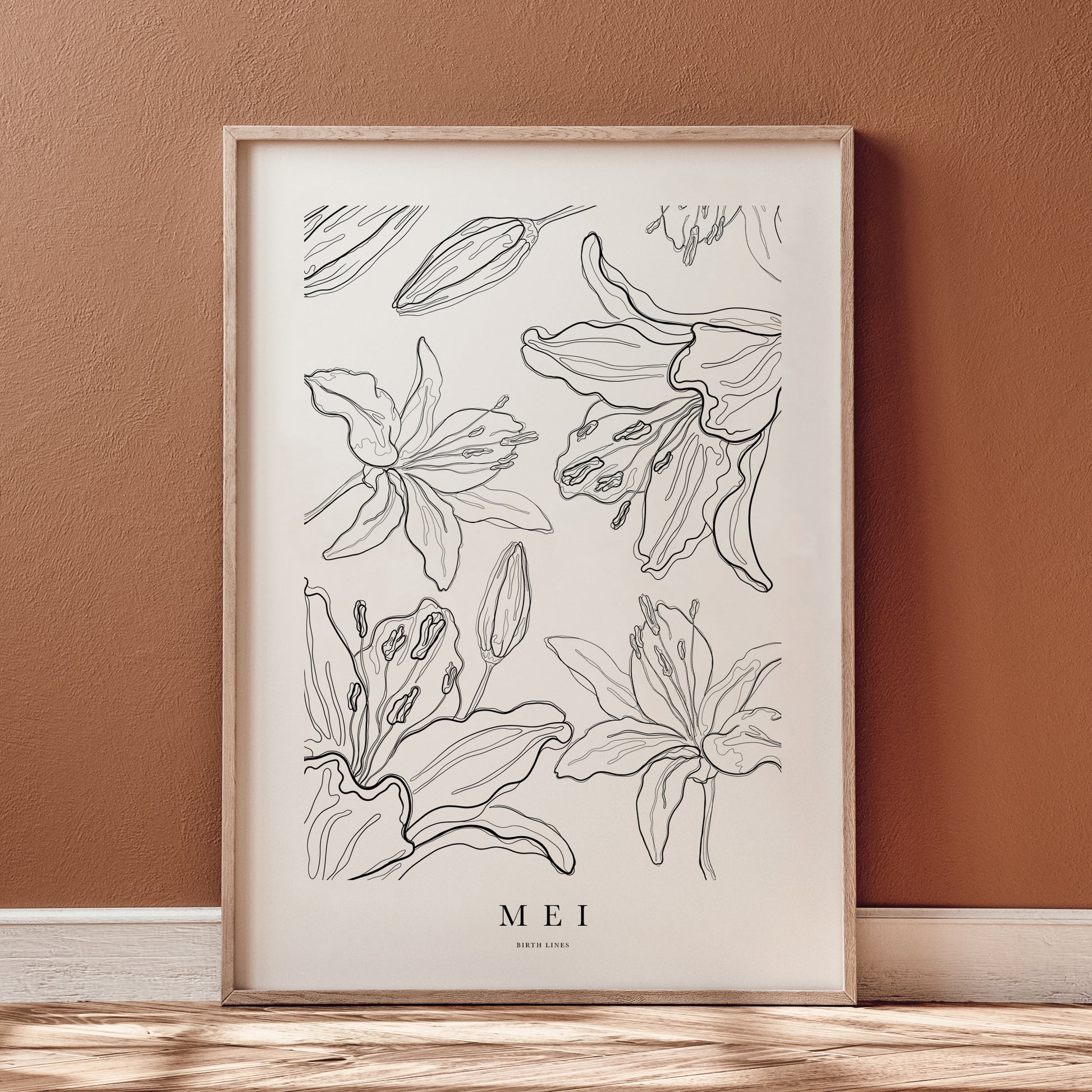 Hand-drawn birth flowers in the signature Birth Lines style, now available as posters! Each month has its own 'Birth Flower' that symbolizes that month. May has the Birth Flower of the Lily .