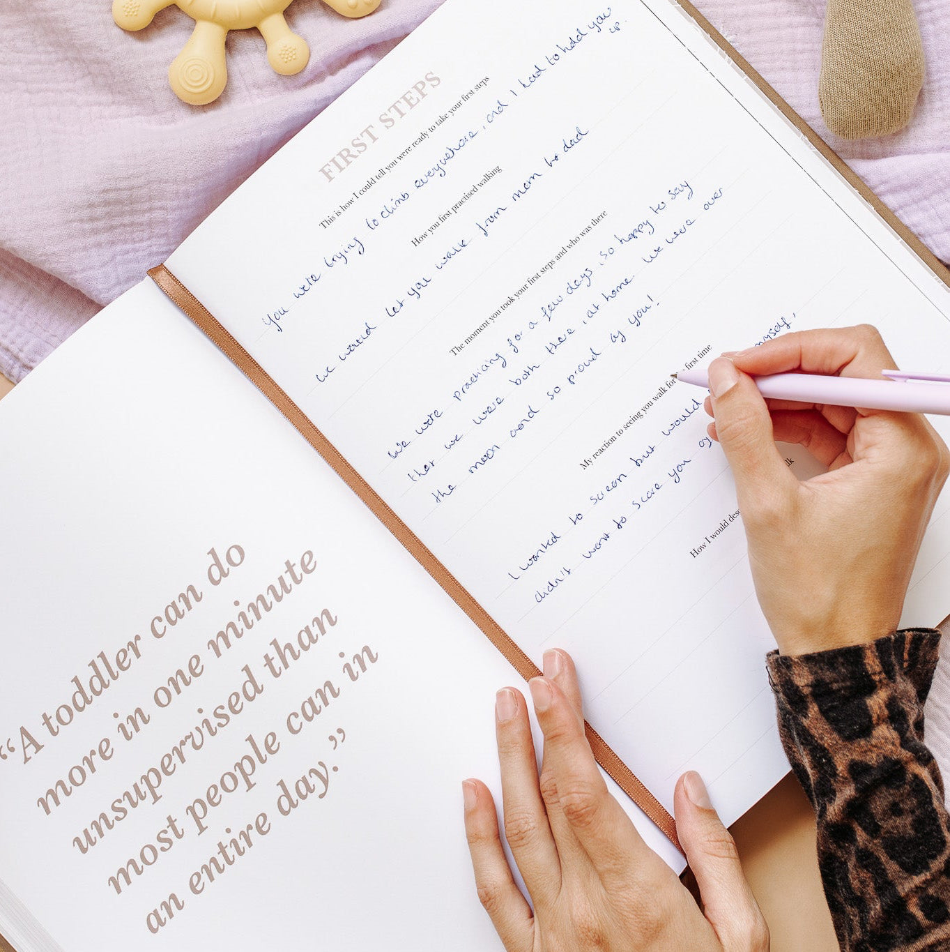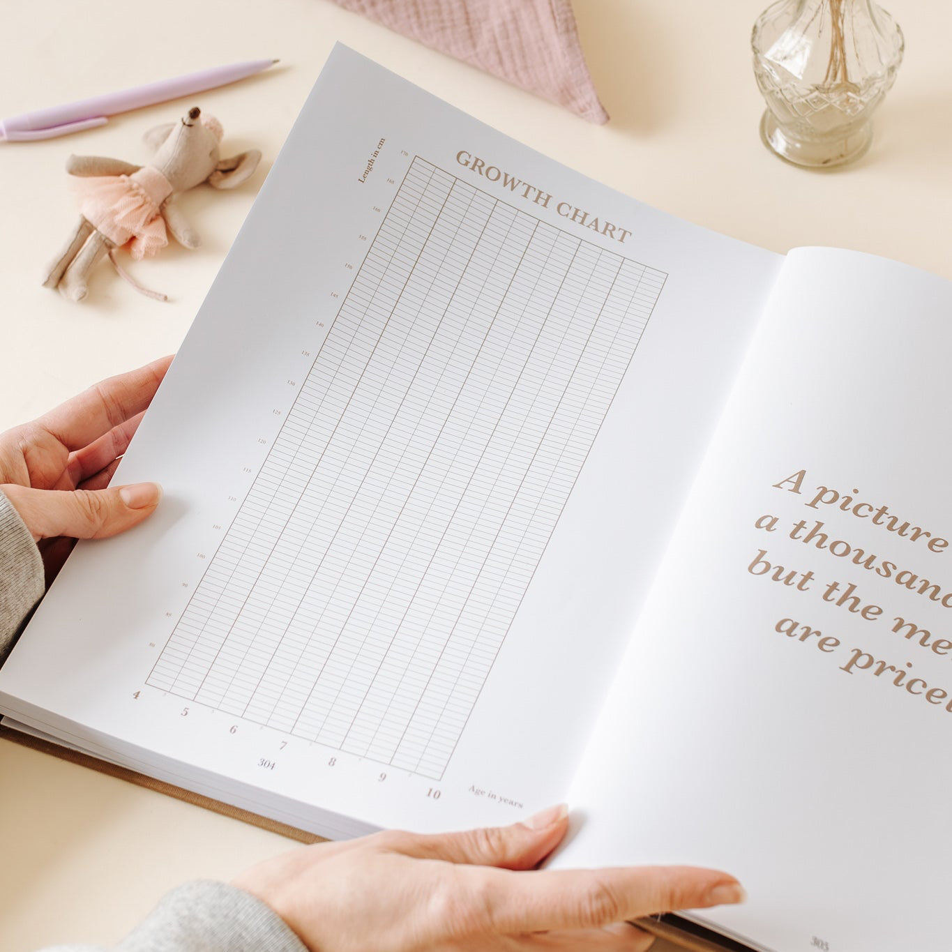 specially designed growth chart. - Record the funniest quotes from your little chatterbox.