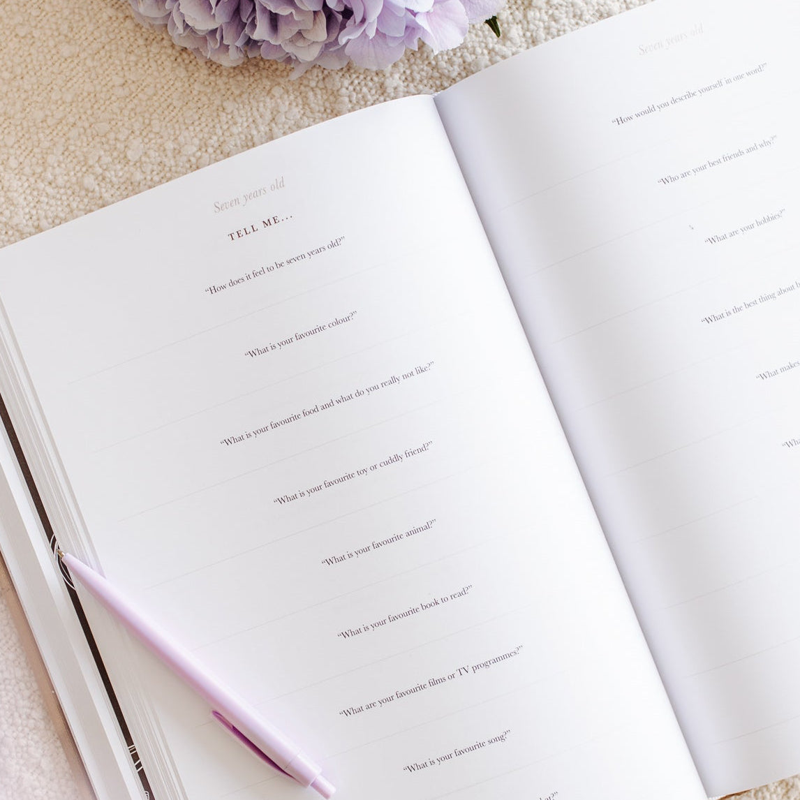 - Each age features approx. 25 pages to record their birthday, favorites, meaningful questions to ask your child, daily routine, special memories, favorite outings, best holidays, school year highlights and more.
