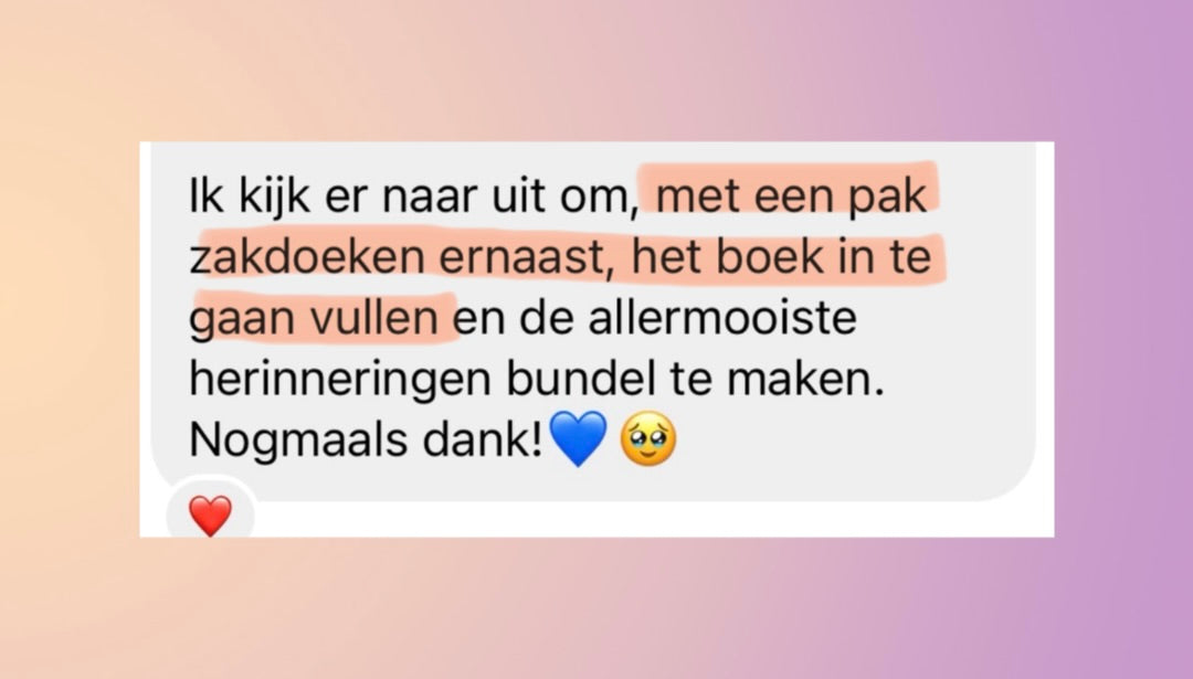 - Het boek wordt ingevuld door de ouder vanuit de 'ik-vorm'. Op deze manier vertel je het verhaal aan je eigen kindje